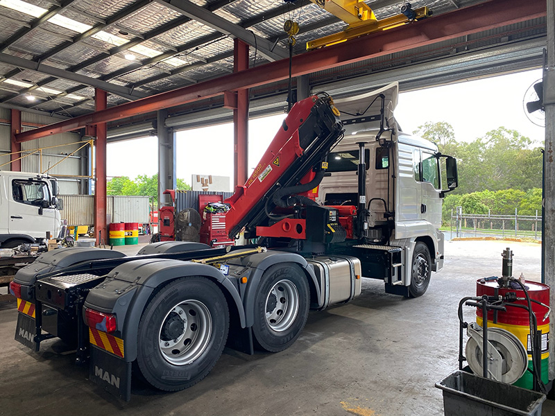 Where on-site attendance is required, a service technician is dispatched to assess the crane and carry out minor repairs where practical. For issues that cannot be resolved safely or effectively in the field, the crane truck is scheduled into the Deception Bay workshop for full repair.